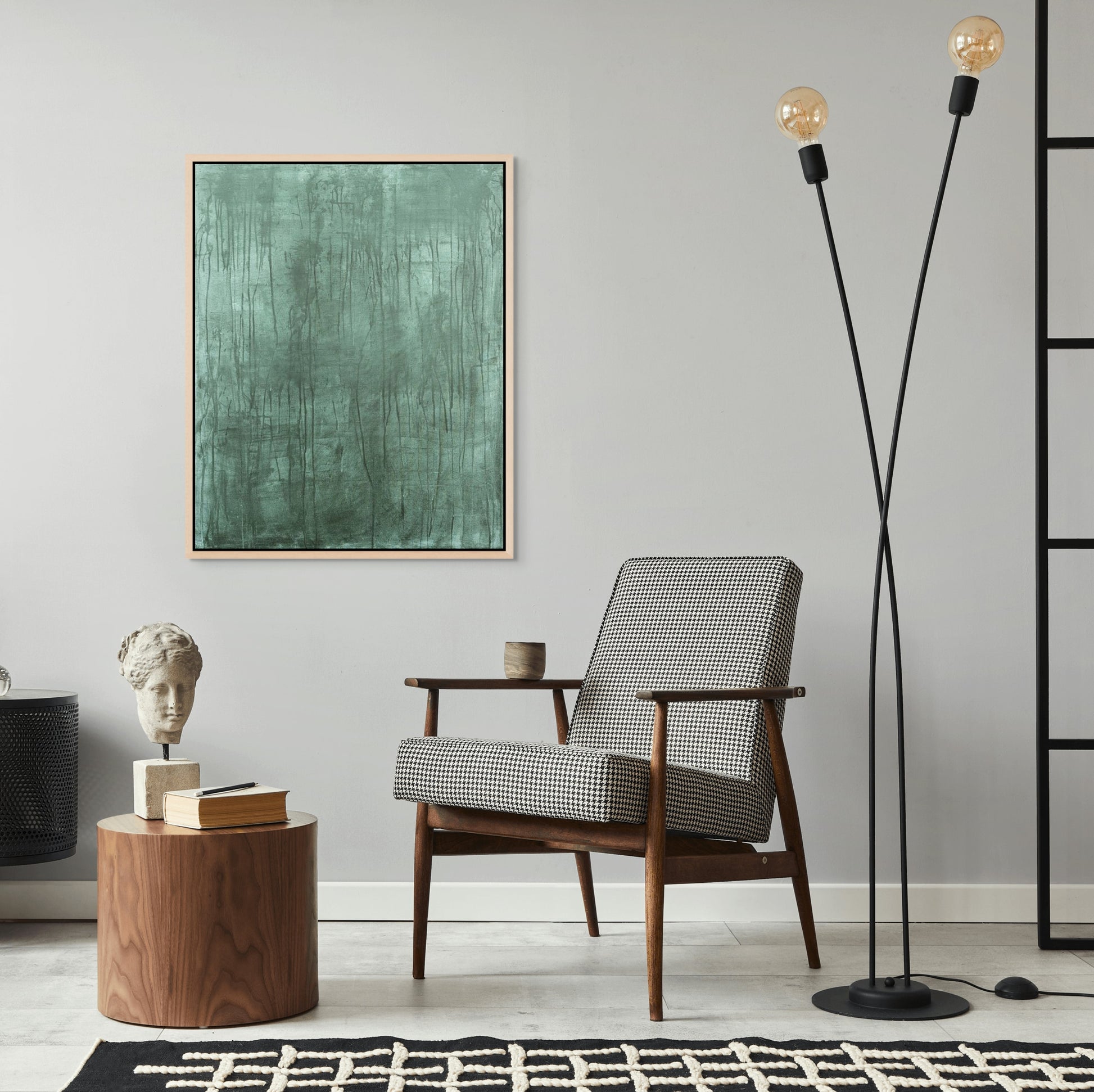 Tinta acrílica iridescente sobre tela artística 100% algodão, sem ácido. Verniz acrílico aplicado na superfície para proteger a obra do pó. Emoldurada e pronta a pendurar.