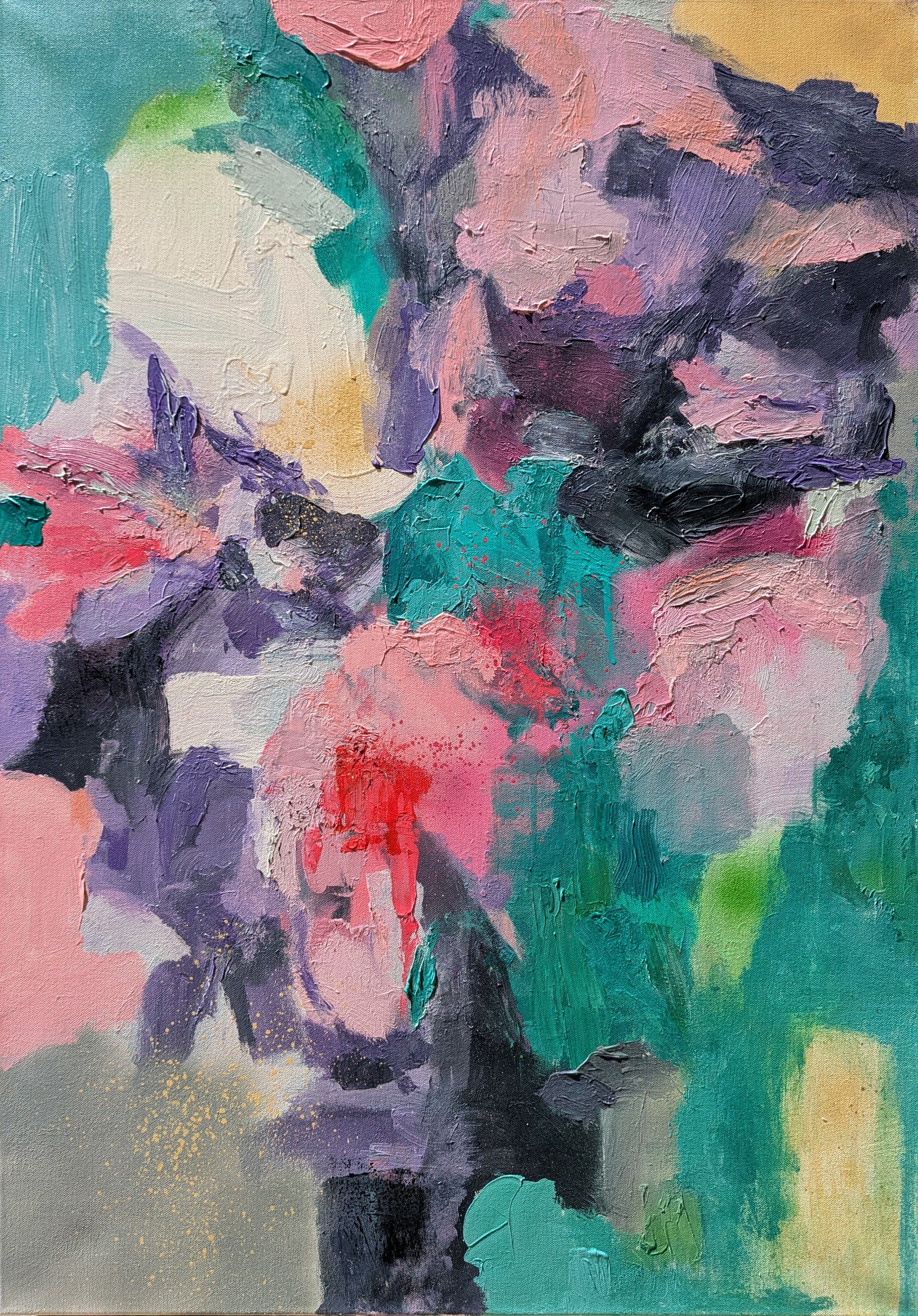 Tinta acrílica sobre tela artística 100% algodão, sem ácido. Verniz acrílico aplicado na superfície para proteger a obra do pó.